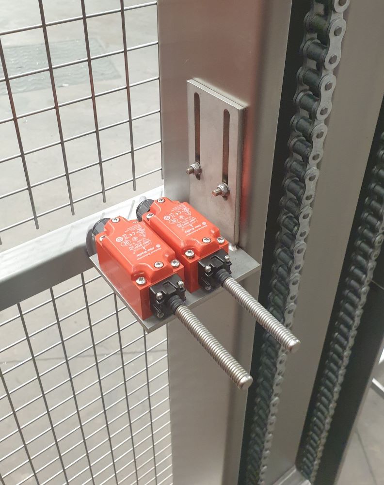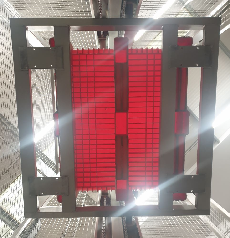 PLM/2P/1000/4000/B/G Dolaf Bin Platform Lift This Dolaf Bin Platform Lift had a Safe Working Load of 1000 Kgs to raise Dolaf Bins to a transfer conveyor at a lift height of 4000mm. The lifting platform was big enough to allow a Dolaf Bin Transfer Conveyor to be mounted on the lift carriage. The Dolaf Bin Platform Lift was manufactured from Grade 304 stainless steel and is a welded construction throughout. The machine is designed to be bolted to the floor without the need for a pit. The lifting is accomplished via chains driven by a motor gearbox mounted at the top of the one column with a crossover shaft to the other column. Dolaf Bin Platform Lift Electrical Control This Dolaf Bin Platform Lift was fitted with an IP65 Stainless Steel Terminal Box which was mounted on the safety guard at the lower level for the control to be completed by others. The following components were be wired back to the terminal box:- - 1 off Motor Gearbox & Brake