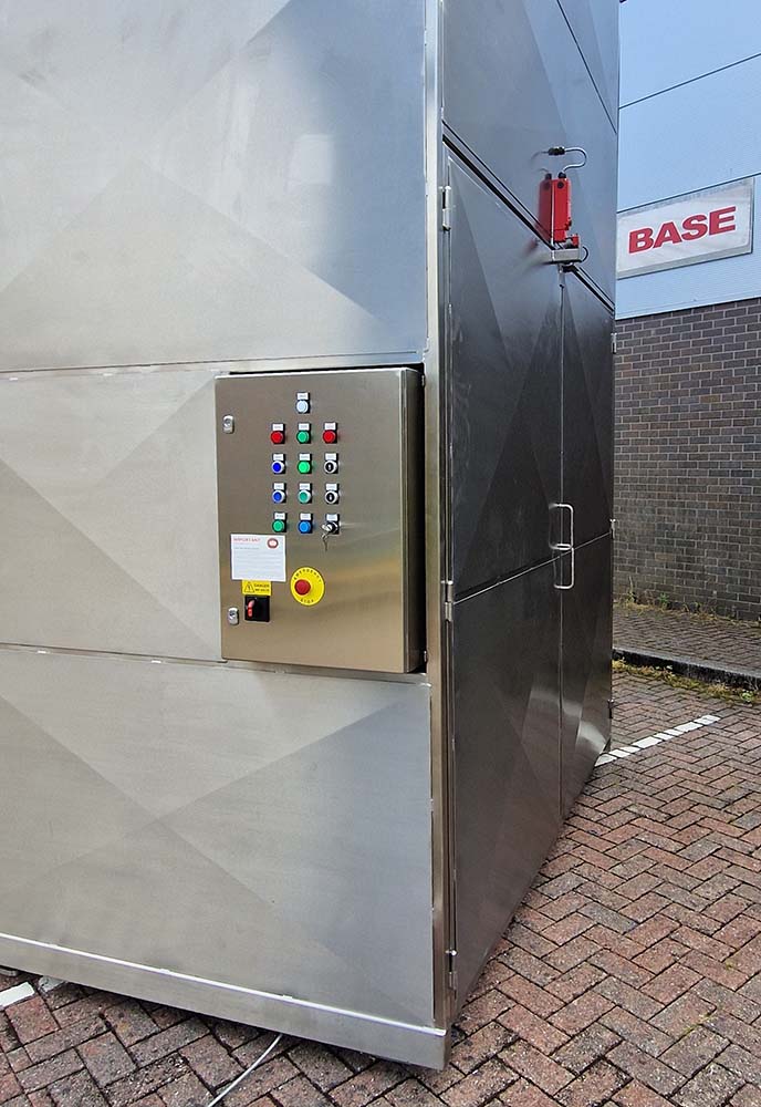 This IBC Platform Lift was fitted with an IP65 Stainless Steel Control Panel mounted on the safety guard at a convenient position to give good maintenance access under the Provision and Use of Work Equipment Regulation 1998 (PUWER). The control panel incorporated the following controls; Up, Down, Guard Release, Emergency Stop, Cleaning Key Switch and a Reset Facility. There was a remote Stainless Steel push button station at the upper level incorporating the following controls; Up, Down, Guard Release and Emergency Stop.