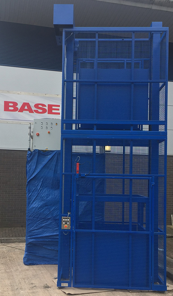 For installation purposes, the Guarded Pallet Lift was manufactured in two sections. The Top Section was moved into place first with a fork lift to raise it approximately 2300mm into the air. The Top Section had purpose made lifting points for the fork truck forks. Once safely lifted, the Bottom Section was slid in underneath and the Top lowered into position. The Ground Floor ramp and upper level landing plate were then be installed.